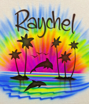 Airbrush T Shirt Tye Dye Sky Beach Scene With Name Ebay